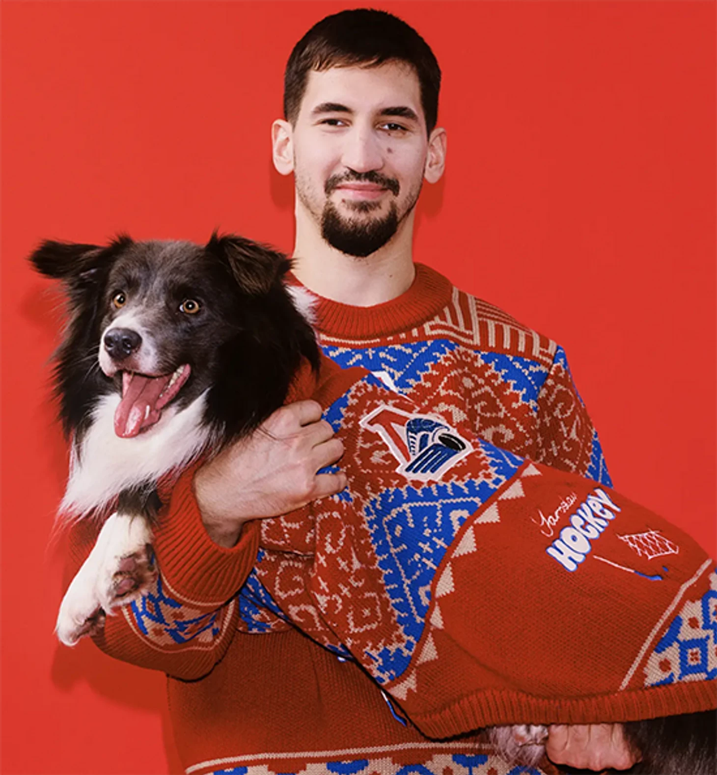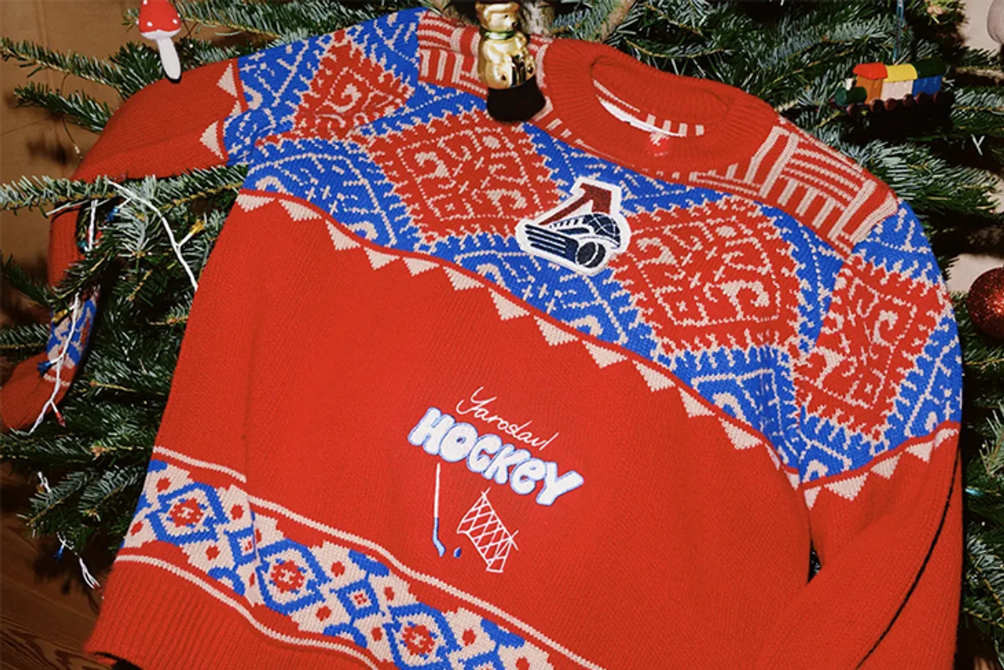 Вышла коллекция свитеров в стиле клубов-партнеров: «Авангарда», «Локомотива», «Салавата» и «Металлурга». Узор каждого из них вдохновлен не только клубной атрибутикой, но локальным орнаментом – местными узорами и цветами. В целом дизайн напоминает тот самый вязаный батин свитер из 90-х.
