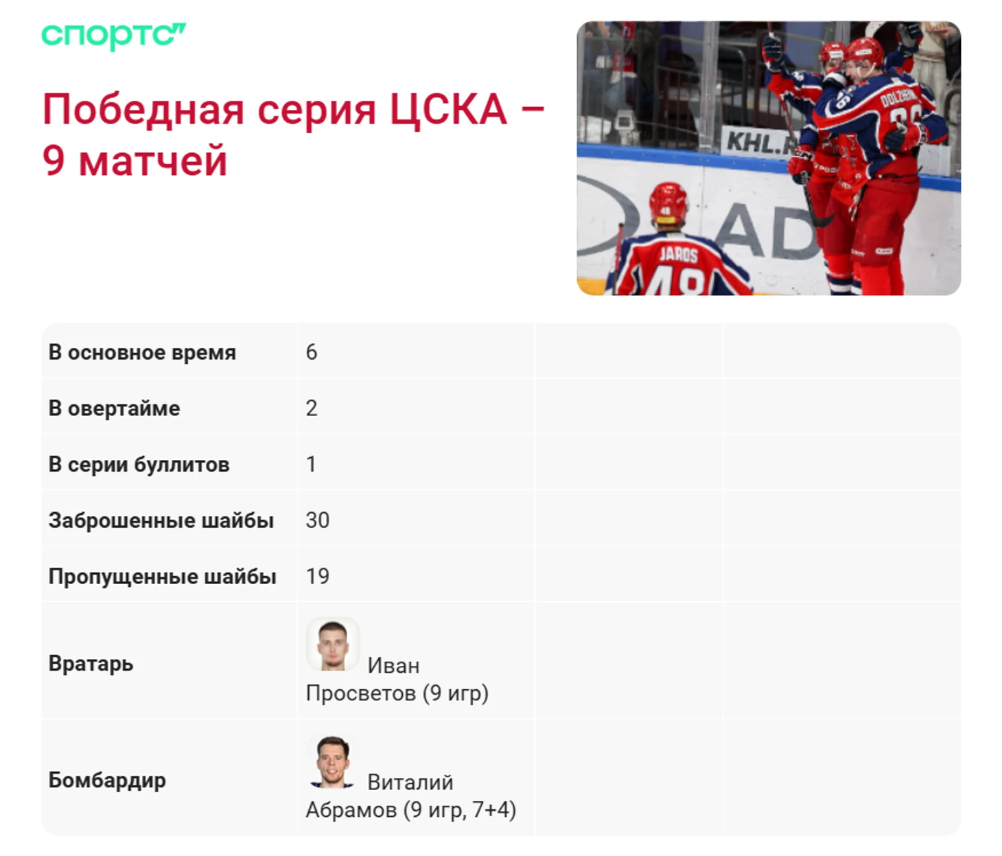 Если смотреть только на счет, то большинство встреч кажутся плотными. В каждой из них у ЦСКА находились уникальные герои. Иногда – совсем неожиданные. Даже ушедший Константин Окулов внес вклад в командный успех на этой стадии сезона: забил победный гол «Динамо», отличился против «Барыса», отдал передачу в эпизоде с голом Соркина «Витязю» на 59-й минуте.