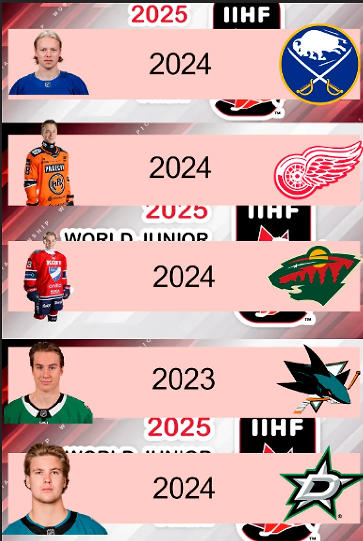 1) Конста Хелениус – 15-й выбор на драфте 2024 года. Выбран «Баффало», сейчас играет за «Рочестер» в АХЛ – 17 очков в 28 матчах. На турнире всего 2 голевые передачи, от него ждут явно большего. В его оправдание можно сказать, что соперники у Финляндии были весьма сильные. 2) Йесси Киискинен – впервые в этом списке будет фигурировать «Детройт» – это именно его проспект, который был получен в рамках обмена с Нэшвиллом. В данный момент является игроком Хамеенлины (Высшая Лига Финляндии), где набрал 22 очка в 26 матчах и отстает от лучшего бомбардира команды всего на одно очко. На МЧМ является лучшим бомбардиром сборной с 3 голами.