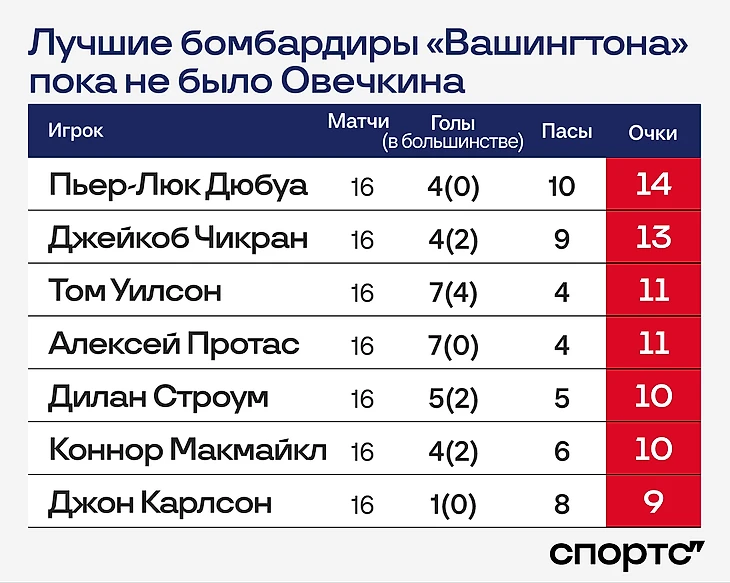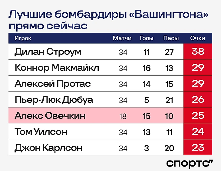 Но обогнать Овечкина в списке снайперов смог только Макмайкл – и то на один гол. Вообще, даже пропустив 16 матчей, капитан не выпал из топ-5 бомбардиров команды. И при хороших раскладах может вернуться на вторую строчку еще до наступления 2025-го в Америке.