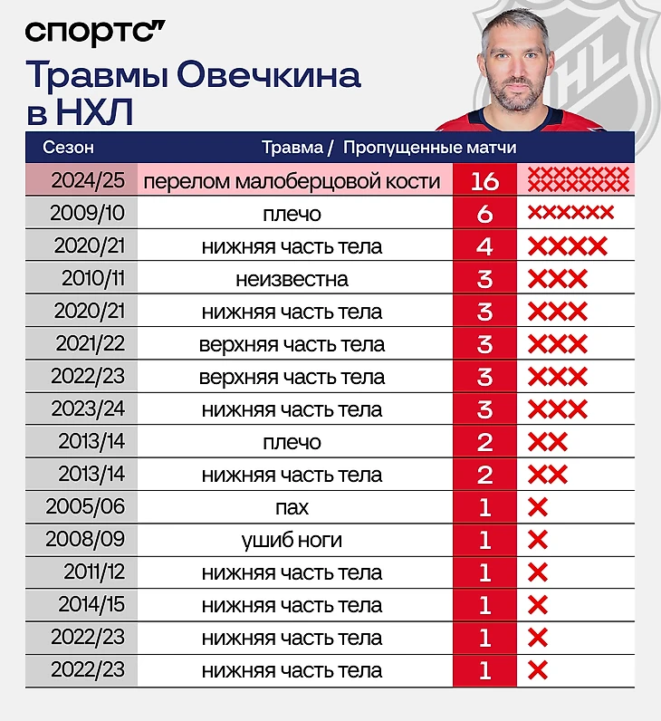 Было непонятно, сколько пропустит Александр, но все намекало на то, что его грустный личный рекорд будет побит – прежде больше чем на 6 игр, он не вылетал из-за травм. Теперь новая цифра – 16. И остается верить, что эта табличка больше не обновится: