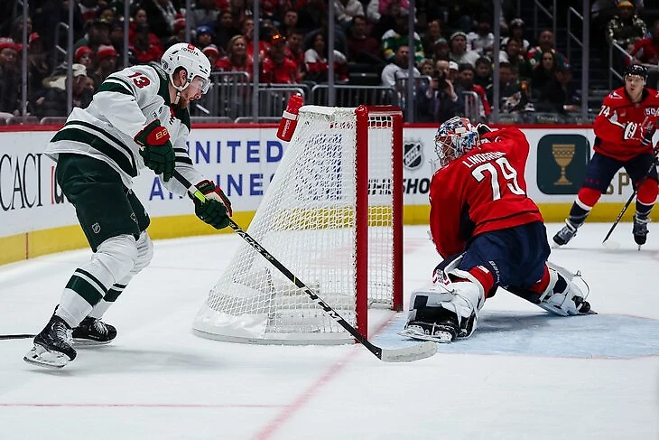 Еще один хайлайт игры – гол «Миннесоты» в меньшинстве. Нападающий Яков Тренин воспользовался чудовищной ошибкой вратаря Чарли Линдгрена. 31-летний голкипер «Кэпиталс» выкатился к лицевому борту и словно впал в ступор. Тренин перехватил шайбу и, не торопясь, завез ее в сетку.