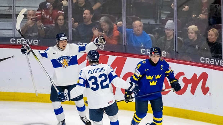 В конце второго периода Артту Аласиуруа в силовой манере продавил шведскую оборону и затолкал шайбу в ворота Швеции. В третьем периоде шведы снова сравняли счет, дальний выстрел Вильгельма Халльквиста не смог отразить Петтери Римпинен, по сути, это единственная ошибка финского вратаря за весь турнир. Игра перешла в овертайм, где на 3 минуте удалился Йессе Нурми и казалось, что шведы сейчас вырвут победу, реализовав большинство 4 на 3. Но финны героически выстояли в меньшинстве, а в конце 10 минутного овертайма сами получили возможность поиграть в большинстве. И за 40 секунд до конца овертайма Бенжамин Раутяйнен реализовал большинство хитрым броском с острого угла, Телин не ожидал такого и пропустил между щитков.