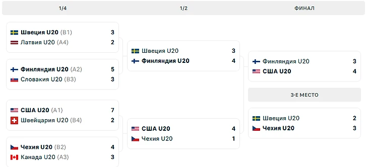 Этот гол надломил финнов, после него они еще сильнее подсели. А в самой концовке 2 периода Коул Хатсон здорово подключился к атаке и с кистей уверенно реализовал свой момент – 3:3! В 3 периоде преимуществом владели американцы, если бы не Римпинен, скорее всего матч закончился бы в основное время, но игра перешла в овертайм. В дополнительное время при игре 3 на 3 американцы продолжали полностью владеть инициативой, моменты были у Хагенса, Перро и Леонарда, но каждый раз их останавливал вратарь финнов. Но на 9 минуте овертайма, после великолепной передачи Зива Буйума, Тедди Стига вышел один на один с Римпиненом и переиграл его, принеся сборной США второе золото подряд!