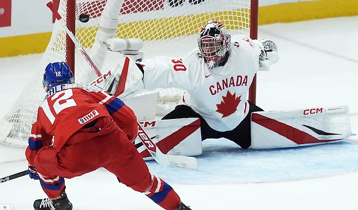В заключительном четвертьфинале встречались сборные Канады и Чехии. Матч начался неожиданно для всего стадиона, болеющего за «кленовых листьев», Петр Сикора забросил шайбу уже на 1 минуте (00:43). Канадцы отыгрались в меньшинстве в середине первого периода (Таннер Хоу), но чехи все-таки забили в этом большинстве и снова вышли вперед со счетом 2:1 (Штанцль). За 3 секунды до конца первого периода один из лучших форвардов Чехии Эдуард Шале замкнул отличную передачу Масталирски на дальней штанге и увеличил преимущество чехов (3:1).