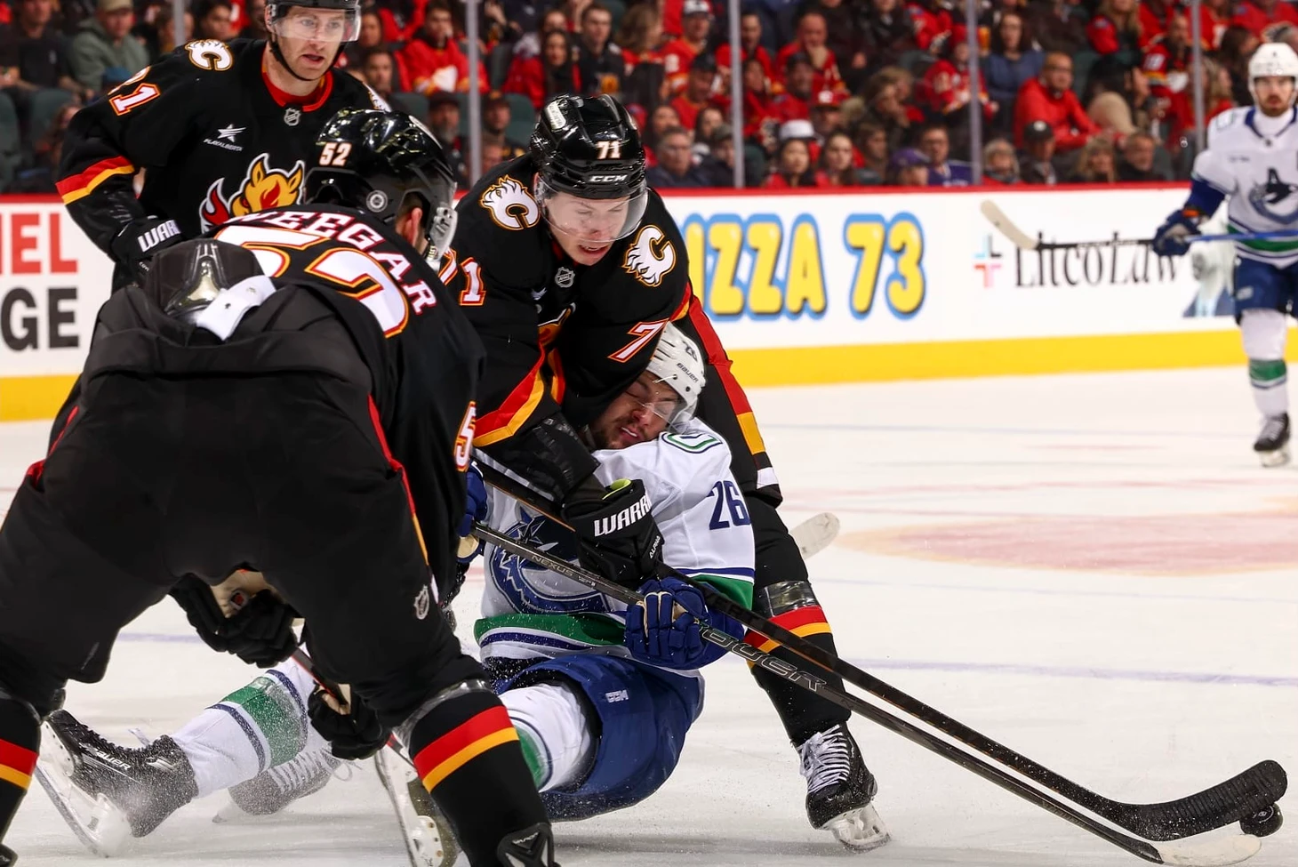 Карсон Суси никогда не играл по карьере в среднем больше 17:40 за матч, но в четырех встречах без Хьюза вынужден был закрывать более 21-й минуты. Игровое время Ноа Джулсена вплотную подбирается к 20 минутам за матч. Вдумайтесь: защитник уровня седьмого игрока обороны в нормальной команде плей-офф (коей «Кэнакс», безусловно, являются), играет как хоккеист топ-4. Все это приводит к ошибкам под нагрузками. Так «Кэнакс» отдали матч с «Сиэтлом», где вели 4:1 за пять минут до сирены. А против «Калгари» в третьем периоде команда, начавшая очень бодро, была просто «под водой». Защита не справлялась с тем, чтобы доводить шайбу до нападающих в рабочих позициях после своих отборов, а потому позиционные атаки «Флэймз» превращались в пытку.