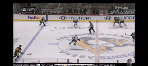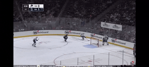 Не буду перегружать стрелочками и скринами, покажу один из вариантов через гифку. Тут «Кэнакс» выиграли борьбу в своей зоне, и Дэнтон Хейнен, в принципе, мог тащить сам или искать вариант передачи справа в средней зоне, но предпочел развернуться и сыграть через «дом». Это обычная практика для «косаток». В данном случае сработало неплохо, и команда уверенно зашла в чужую зону.