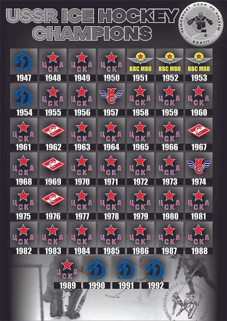 В 1946 году в газете «Советский спорт» было опубликовано постановление Всесоюзного комитета по делам физической культуры и спорта «О проведении первенства СССР по канадскому хоккею». Удаления вратарей, борта из фанеры, либо скамейки, поставленные на бок, были в те времена обычным явлением. Соревнования, вызывающие у зрителей большой интерес порой проходили на льду пруда. Трети игры по аналогии с футболом называли таймами. Первоначально хоккейные сезоны проводились исключительно в зимнее время, но с появлением искусственного льда и крытых арен, временной период ледовых баталий увеличивался и заканчивался весной. В чемпионате СССР неизменно доминировали московские команды. Клубы не из столицы редко попадали в число призеров, а чемпионами не становились ни разу.