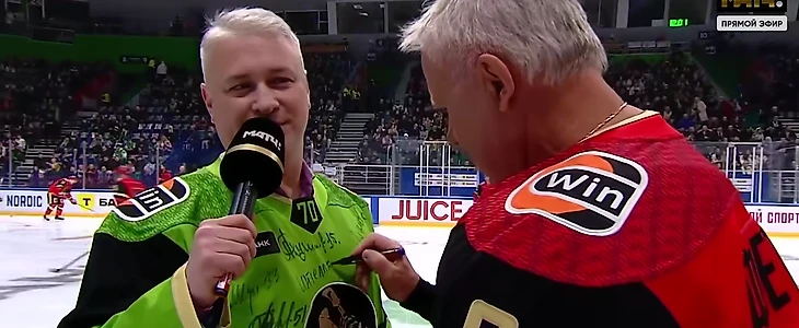Еще до начала матча, корреспондент «Матч ТВ» Дмитрий Лукашов надел игровой свитер, на котором просил спикеров написать несколько слов, характеризующих Гимаева. «Хоккейный интеллект» – отметил Фетисов. После игры джерси передали семье в качестве памятного подарка.