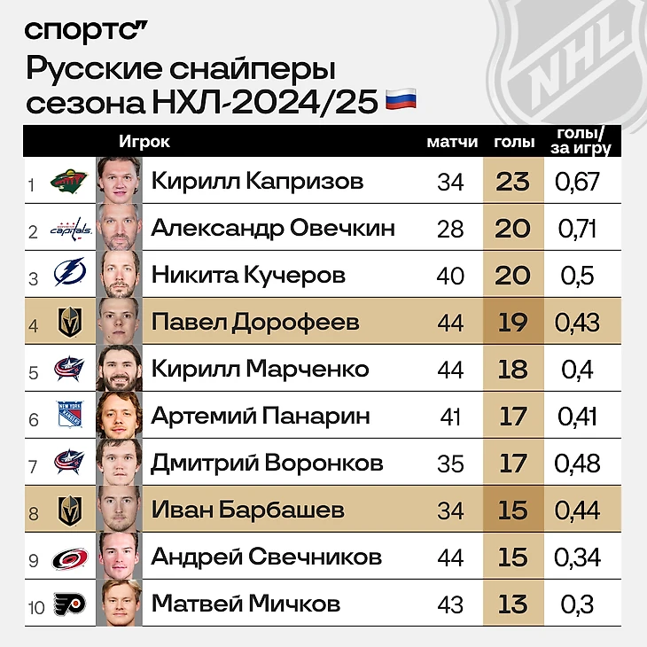 У «Вегаса» действительно наблюдается небольшой спад – три поражения в четырех матчах. Хотя лидеры Тихоокеанского дивизиона могут себе позволить. Ну и можно порадоваться за Дорофеева, который вполне претендует на то, чтобы главным русским снайпером сезона.