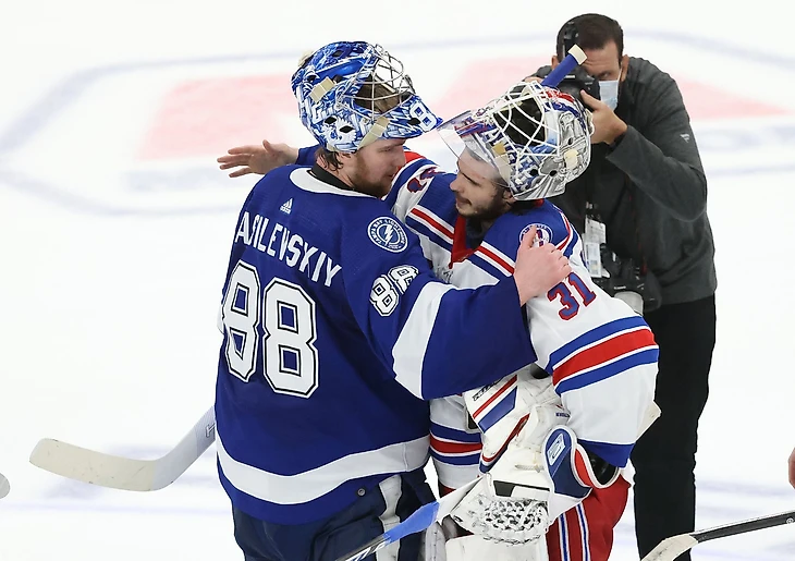 Команду возглавил опытнейший тренер Жерар Галлан, который получил в свое распоряжение прекрасный состав игроков – здесь были и исполнители в самом расцвете сил, и молодые, талантливые, голодные до побед хоккеисты, которым было что доказывать. Артемий Панарин – лидер нападения, который находился в блестящей форме и входил в число самых высокооплачиваемых игроков Лиги. Он, вместе со шведом Микой Зибанежадом и американцем Крисом Крайдером, составил мощнейшую тройку нападения, которая закошмарила всю Лигу, в том числе и при игре в большинстве. Молодежь в лице Алексиса Лафренье, Каапо Какко и Филипа Хитила добавляла команде энергии, а Адам Фокс, Джейкоб Труба и К’Андре Миллер в обороне надежно прикрывали тылы. Но и это не всё. Возможно, одним из главных факторов успешного выступления Рейнджерс в том сезоне являлась выдающаяся игра молодого российского вратаря, Игоря Шестеркина. Игорь в сезоне 2021/2022 был просто непоколебим и абсолютно заслуженно получил приз лучшему вратарю сезона – Везина Трофи. Всё у команды ладилось, всё было хорошо, парни Галлана уверенно зашли в плей-офф и прошли два первых раунда. Казалось, «Рейнджеры» доведут сезон до логичного исхода и возьмут наконец-таки долгожданный Кубок, но у судьбы на этот счет были другие планы. В финале конференции «копы» схлестнулись с Тампой, которая оказалась сильнее в 6 играх и в финале взяла свой очередной Кубок.