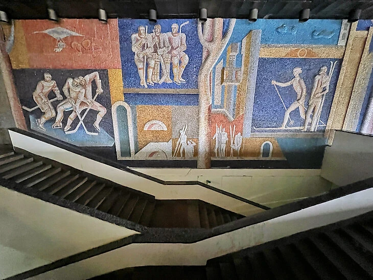 Дворец – жемчужина Можайского района, где живут 140 тысяч человек. Некоторые из них даже называют стадион памятником отечественному зодчеству – все из-за причудливо вылепленной мозаики внутри помещений.