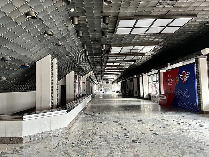 Внутри, за фанатской трибуной, установлено венгерское табло – одно из нескольких десятков, доставленных в Москву специально к Олимпиаде. Табло по тем временам было уникальным – передавало цвет и телекартинку.