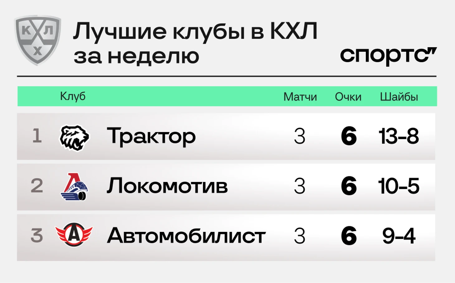 Лучшие клубы: «Трактор», «Локомотив» и «Автомобилист»