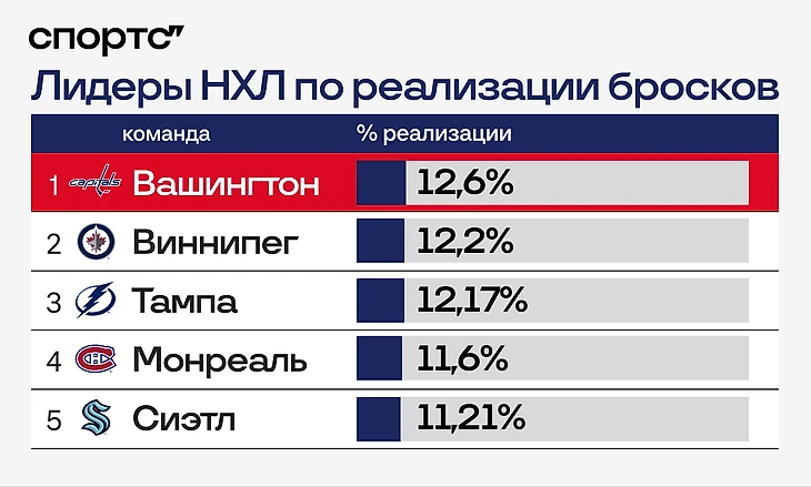 Процент реализации «Вашингтона» потрясает с самого старта чемпионата и с самого старта делает «Кэпс» мишенью для ухмылок. Ну, типа: «оверперформ как он есть, галимый, и скоро вся эта ваша красота развалится».