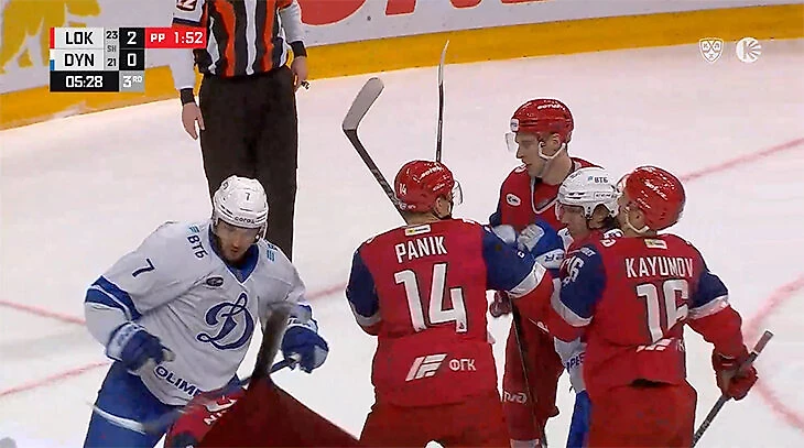 К тому моменту «Локомотив» уверенно вел 2:0 и заработал большинство. Казалось, реализация окончательно убила всю интригу, но официально она не состоялась. Сразу после вбрасывания игрок «Динамо» Артем Ильенко упал на лед. «Локомотив» забил буквально через несколько секунд. Вот только вместо радости от гола – драка Максима Джиошвили и Максима Березкина.