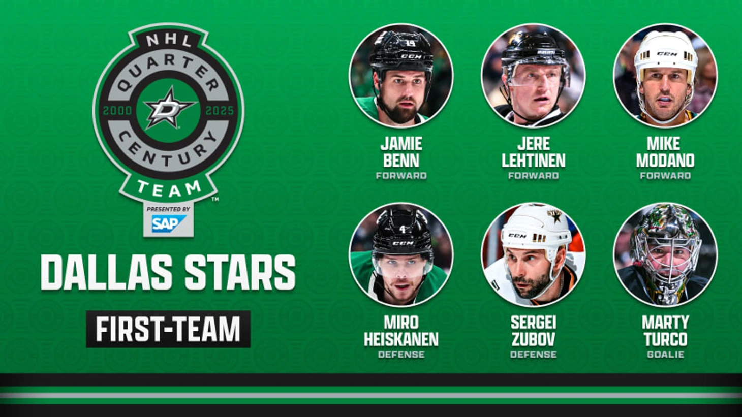 Джейми Бенн, Йере Лехтинен, Майк Модано в первой тройке нападения; Миро Хейсканен и Сергей Зубов вошли в число лучших защитников в истории франшизы