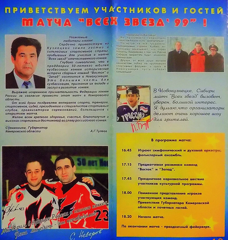 На том матче присутствовал губернатор Кемеровской области Аман Тулеев, избранный за пару лет до этого. Сделал общее фото с хоккеистами, но обошелся без общения с ними, как вспоминают участники событий. Позже Леонид Вайсфельд рассказывал, что тот визит губернатора Кузбасса на хоккей был последним, хотя областью он руководил еще 19 лет.
