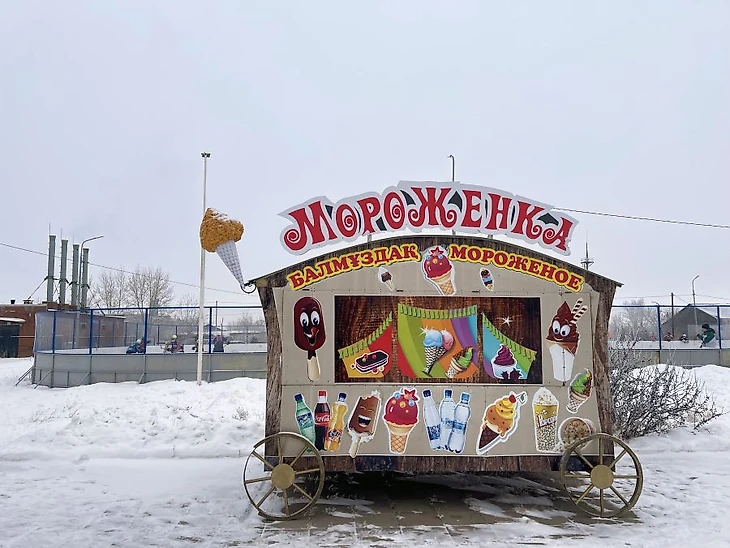 В Денисовке атмосферно, а особенно доставляет киоск с мороженым (правда, закрытый) с другой стороны площадки.