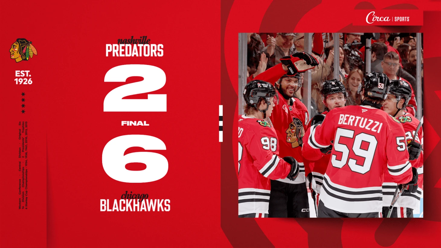 «Чикаго Блэк Хоукс»-»Нэшвилл Предаторз» 6:2. Хозяева во втором периоде забросили 3 шайбы. Райан Донато набрал 4 очка (2+2), Франк Назар с Коннором Бедардом и Сетом Джонсом набрали по 2 очка (1+1), Теуво Теравайнен и Алекс Власик отдали по 2 результативные передачи, Петр Мразек отразил 31 бросок. В втором периоде Лэндон Слаггерт подрался с Люком Шенном. «Хищники» проиграли 6 матч подряд.