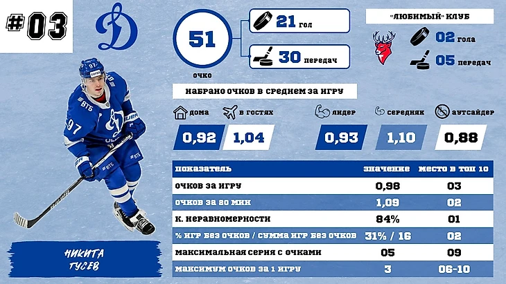 3 место – Никита Гусев. Несмотря ни на что, держит марку. Ненадолго выпадал из тройки, но вернулся туда, выдав 3 матча подряд с двумя очками. На мой взгляд, он по-прежнему один из основных кандидатов на тройку (раньше был кандидатом на лидерство, но тут все стало сложнее).
