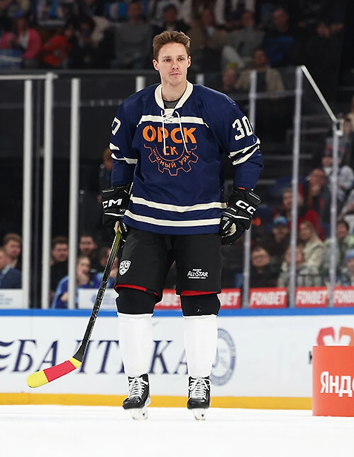 ● Владислав Каменев вообще переоделся в специальную форму. Там были надписи «Орск» и «Южный Урал». Оказалось, что это ретро-джерси его отца: «Задача была сказать спасибо отцу, который воспитал меня и привел в хоккей. Этим я хотел его поблагодарить».