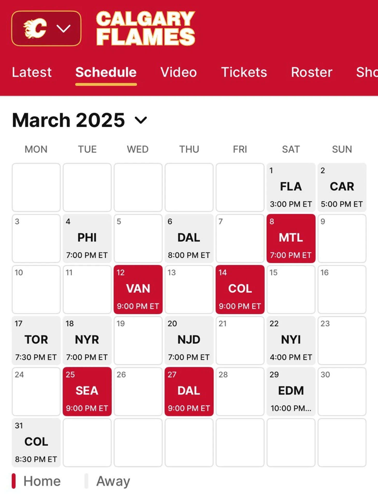 При этом в январе у проводящего бодрый сезон, но остающегося в гонке за плей-офф в основном из-за проблем «косаток» «Калгари» катастрофически сложный календарь в марте. Вообще я не сторонник оценивать силу предстоящих соперников, поскольку в НХЛ каждый может обыграть каждого, но «Флэймз» и правда не позавидуешь. Разве что против «Ванкувера» у них удобный расклад: это будет домашняя игра после отдыха, в то время как для парней Токкета она станет второй встречей в бэк-ту-бэке.