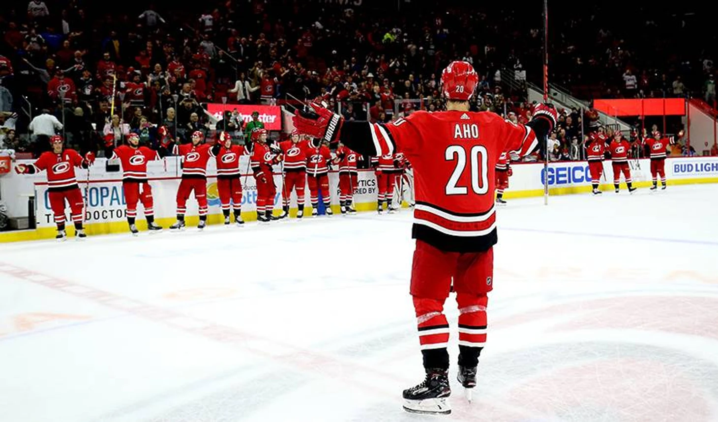 В трети матчей команда забивает меньше трёх голов, в 82% встреч – не больше четырёх. Делит 4-е место с «Нэшвиллом» по голам в пустые (15). Ахо поучаствовал в шести таких шайбах (10%). То есть команда в среднем забивает три с игры, а Ахо участвует в 30% этих голов.