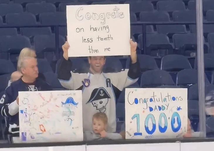 В четверг, когда его брат Кэл готовился стать всего девятым игроком в истории Американской хоккейной лиги, достигшим отметки в 1000 матчей, альтернативный капитан «Нэшвилла» стоял у борта, надев джерси «Милуоки Эдмиралс» с фамилией «О’Райлли» и держа над головой плакат с надписью: «Поздравляю! Теперь у тебя зубов меньше, чем у меня».