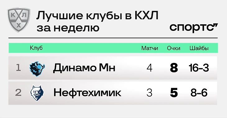 Лучшие клубы: минское «Динамо» закрепилось в зоне плей-офф, «Нефтехимик» туда стремится
