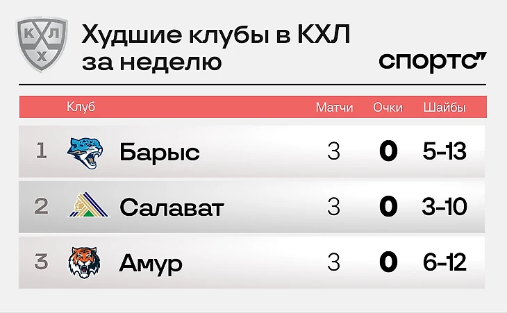 Худшие клубы: «Салават» упустил второе место на Востоке, «Барыс» и «Амур» продолжают падение