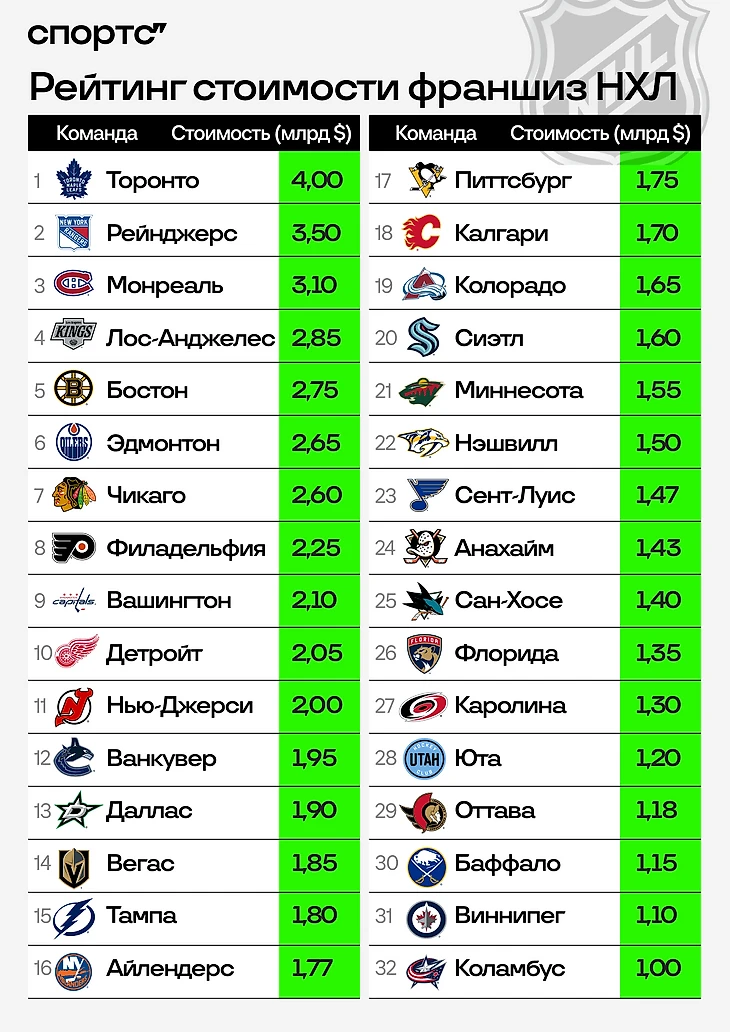 Откуда берутся эти цифры? Сколько вообще стоят команды НХЛ и какие из них самые дорогие?
