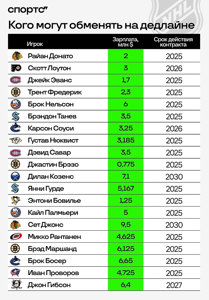 Дедлайн переходов – одна из контрольных точек любого сезона НХЛ, и до нового осталась неделя. 7 марта в 23:00 (по московскому времени) окно обменов закроется – и до конца сезона клубы будут использовать только те ресурсы, которые у них есть (ну разве что можно усилиться собственными проспектами из Европы без контракта). Момент безумно важный – и для тех, кто собирается на что-то претендовать в этом сезоне, и для тех, кто не попадает в плей-офф, но уже думает, как жить дальше.