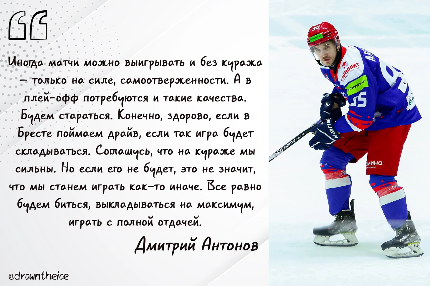 Это победа «Славутича», это равный счет в серии, это решающий третий матч впереди. Победитель попадает в плей-офф. Защитник «Славутича» Кирилл Стихин обещал мне, что они вернут серию в Брест. Обещание сдержал. А еще до этого матча говорил, что и третий матч серии они возьмут. Верим!