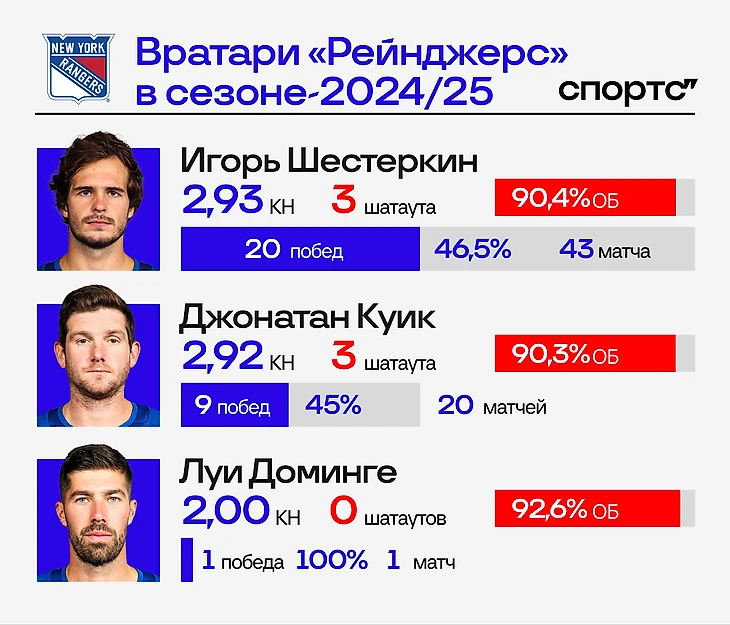 «Рейнджерс» – главное разочарование этой регулярки. Команда, дошедшая в прошлом сезоне до финала конференции и подарившая Игорю Шестеркину статус самого высокооплачиваемого вратаря на следующие 8 лет, сейчас идет за пределами зоны плей-офф.