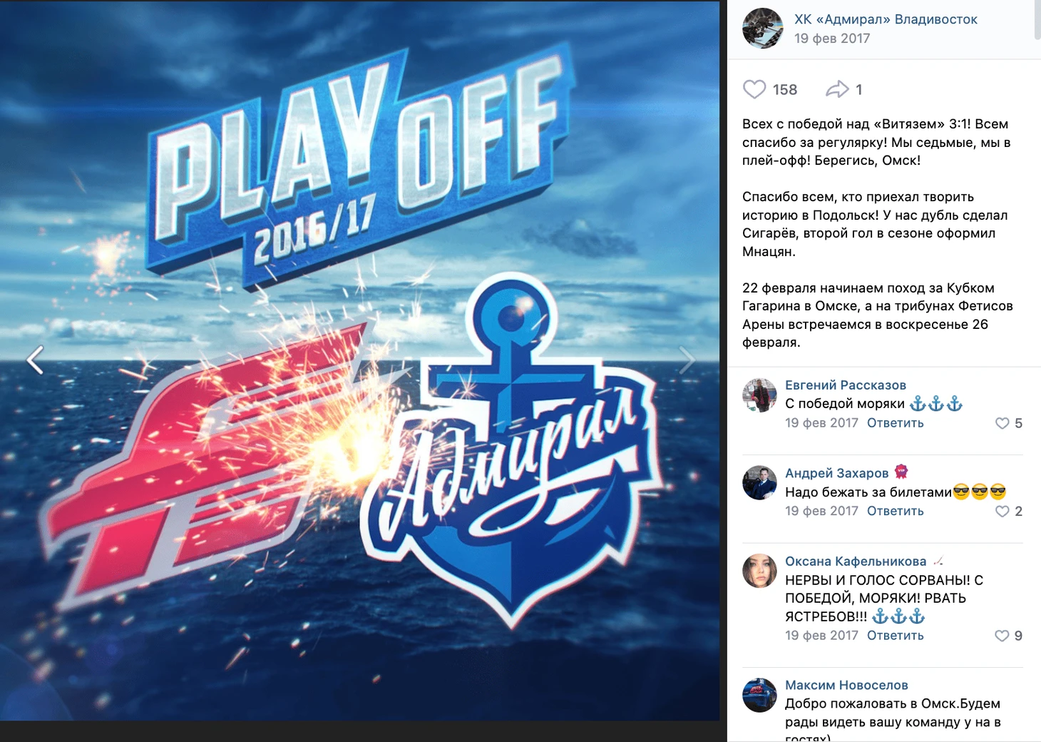 «Итак, «Трактор» проиграл «Торпедо». Теперь расклад предельно прост: победа над «Амуром» (даже в овертайме, даже по буллитам) – выводит «Адмирал» в плей-офф. Все в наших руках. Парни готовятся к матчу. От вас, болельщики, мы ждем лучшую поддержку года! Ваши эмоции будут просто необходимы» – писали клубные соцсети.