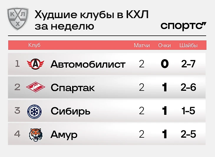Худшие клубы: «Автомобилист», «Спартак», «Сибирь» и «Амур» переживают спад