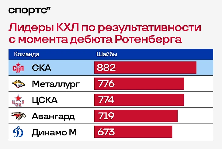 ● Какую-то статистику Роман Ротенберг сам публикует в телеграм-канале. Например, с момента его дебюта СКА – самая результативная команда КХЛ. Еще на пресс-конференции после матча с «Металлургом» тренер заявил, что СКА создал больше всех моментов. Это подсчитать уже сложнее, а вот табличку по голам из телеграм-канала тренера СКА мы вам оставим.