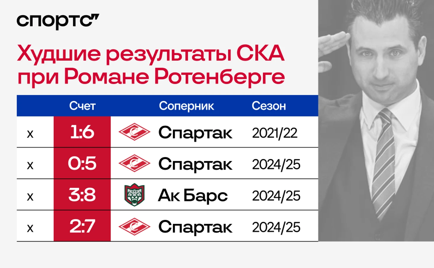 ● Негативной статистики тоже хватает. В регулярке-2024/25 СКА несколько раз повторил худшие показатели при Ротенберге – поражение с разницей в пять шайб. Уж очень сказывается вратарская проблема, а главным врагом явно становится «Спартак». Будет интересно, если они пересекутся в плей-офф.