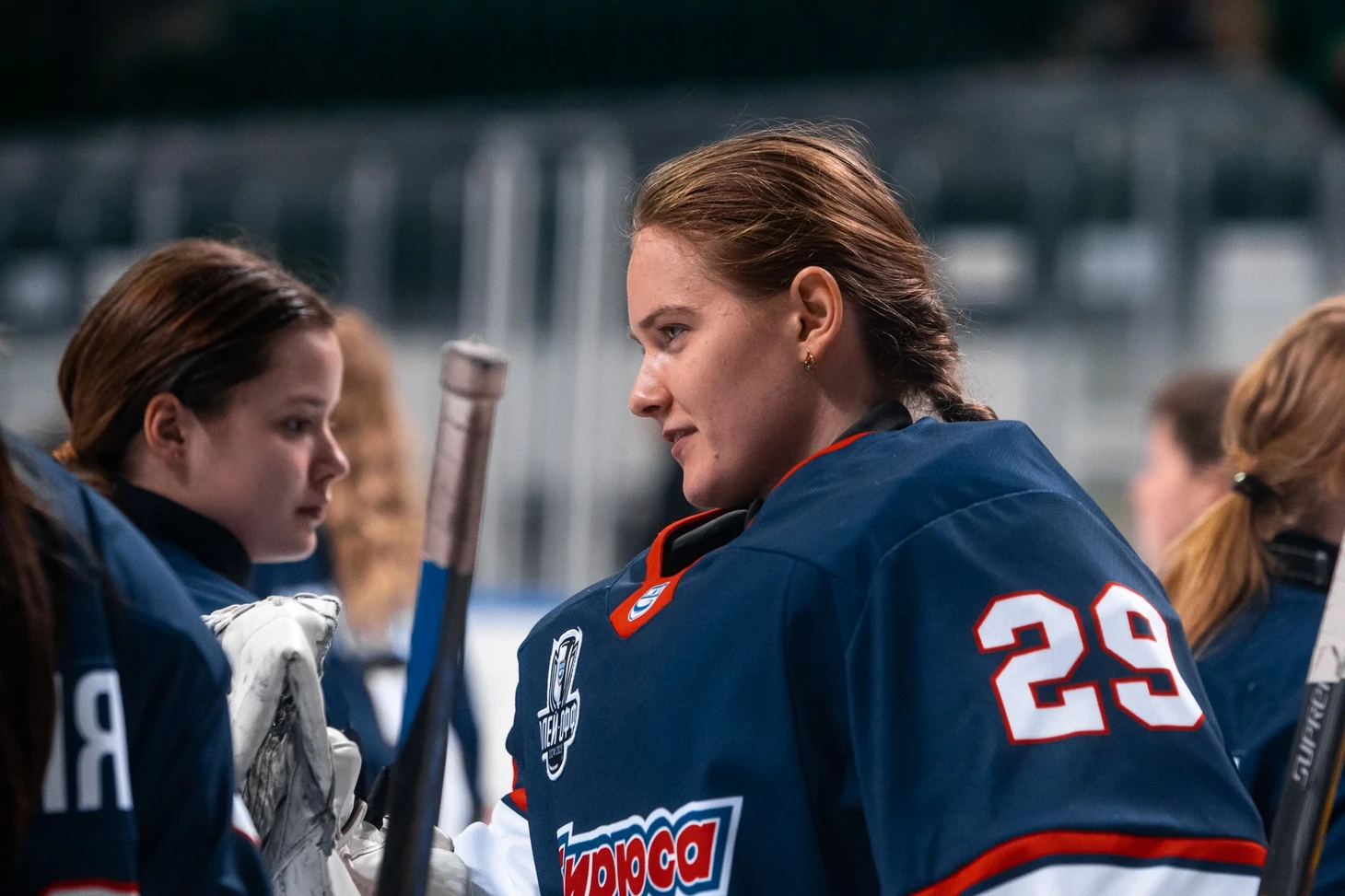 Лидеры «Белых Медведиц» проводят классную атаку, Виктория Федорова забросила первую шайбу в плей-офф.