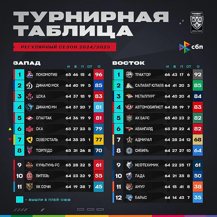 Одержав вчера не самую яркую победу над аутсайдером «Сочи», питерский СКА вскарабкался на 6️⃣ строчку на «Западе».
