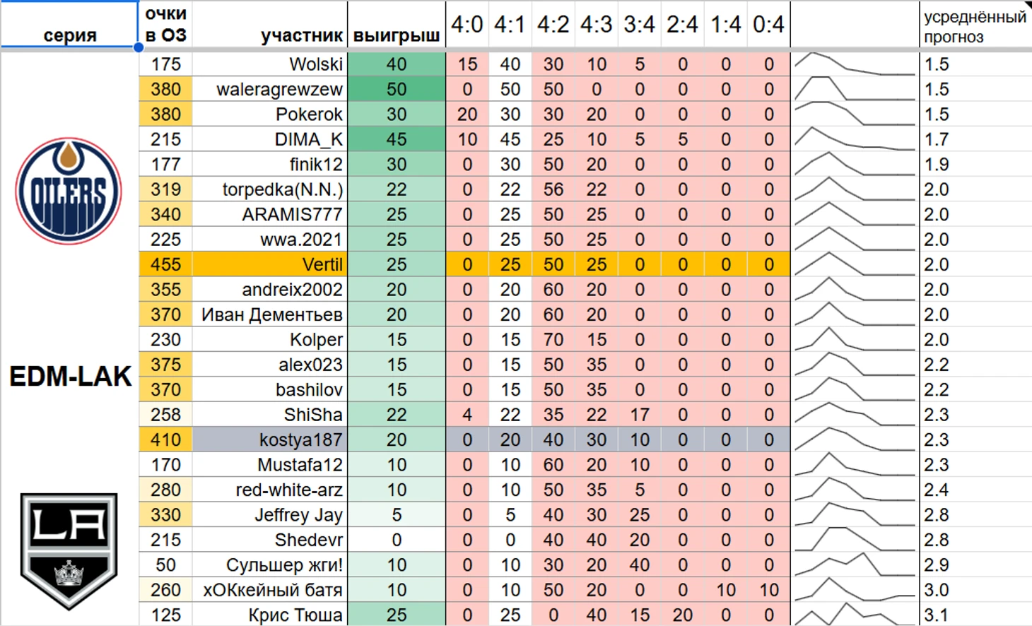 Вы можете ориентироваться на ставки участников прошлого Кубка Стэнли: в таблице собраны все раунды и итоговые результаты. Призёры выделены цветом — можно выявить для себя оптимальные стратегии.