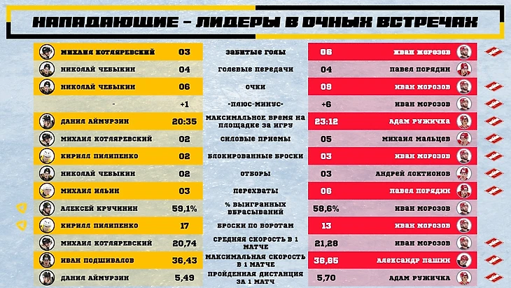 Статистика нападающих в очных встречах