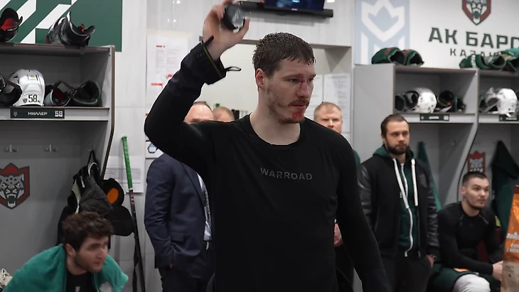 В раздевалке главный тренер Анвар Гатиятулин наградил капитана за мужественность и предоставил ему возможность первому отметить победу команды на старте плей-офф.