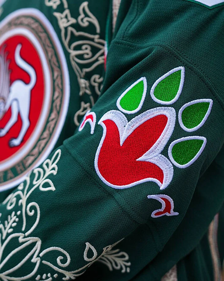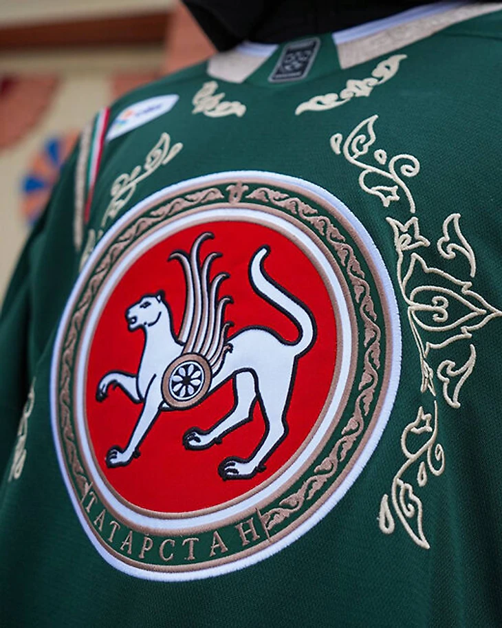 На форме были и другие национальные элементы: тесьма вокруг герба и на рукавах отсылает к узорам казанской башни Сююмбике, а флаг Татарстана передан на форме тюльпаном в виде лапы снежного барса. Джерси, в которых сыграл «Ак Барс», продали с аукциона.