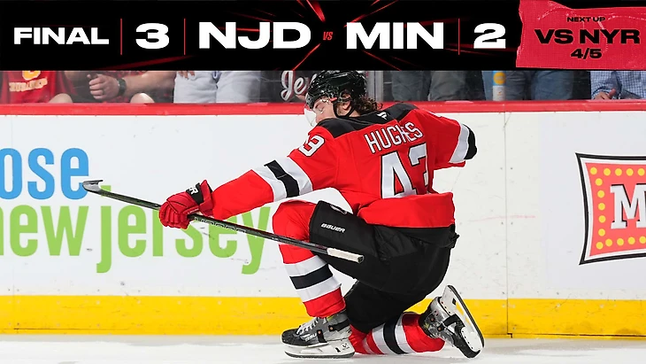 «Нью-Джерси Дэвилз»-»Миннесота Уайлд» 3:2 (Бул). Йеспер Братт в серии буллитов принёс победу хозяевам. Люк Хьюз набрал 2 очка (1+1), Якоб Маркстрём отразил 27 бросков.