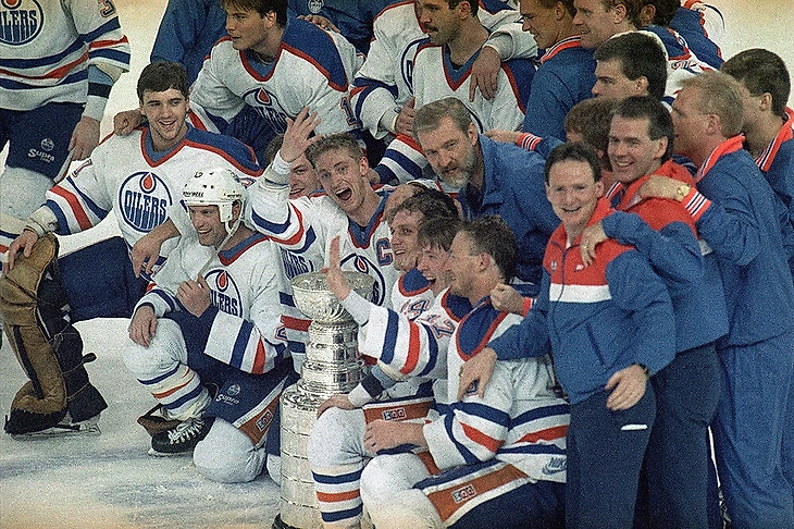 Обыграв «Брюинс» в пяти матчах со счетом 4-0 (в четвертой – бостонской – игре отключилось электричество, поэтому ее отменили и продолжили серию в Эдмонтоне), Гретцки предложил всем игрокам, тренерам и сотрудникам «Ойлерс» сфотографироваться по-старомодному в центре площадки. Он еще не знал, что это его последняя игра за «Эдмонтон».