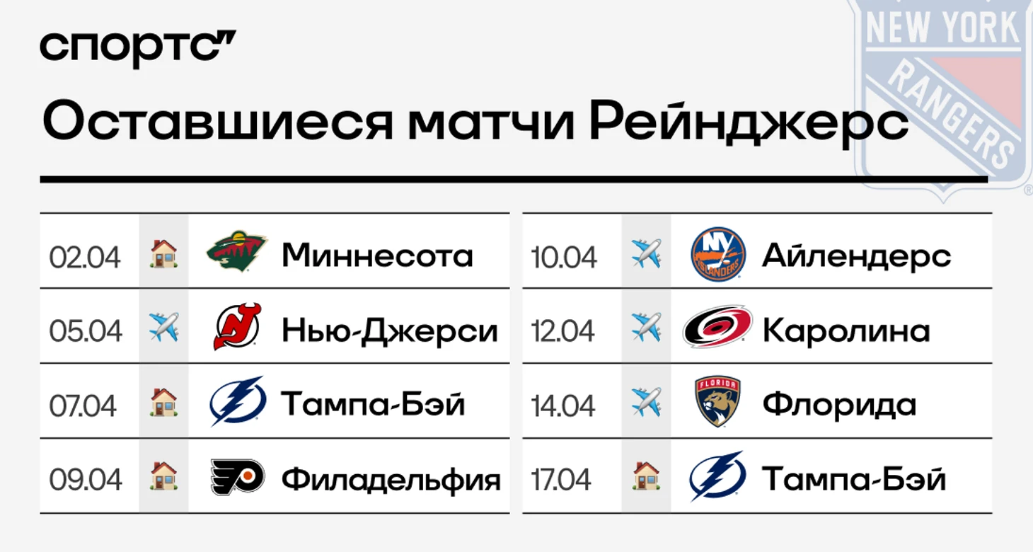 ● Нужно постараться, чтобы найти жизнь в нынешних «Рейнджерс» – но где-то глубоко в клубе она еще теплится. Для плей-офф нужны не только собственные победы, но и осечки конкурентов. Учитывая календарь, есть большая вероятность, что Игорь Шестеркин и Артемий Панарин пропустят этот розыгрыш Кубка Стэнли.