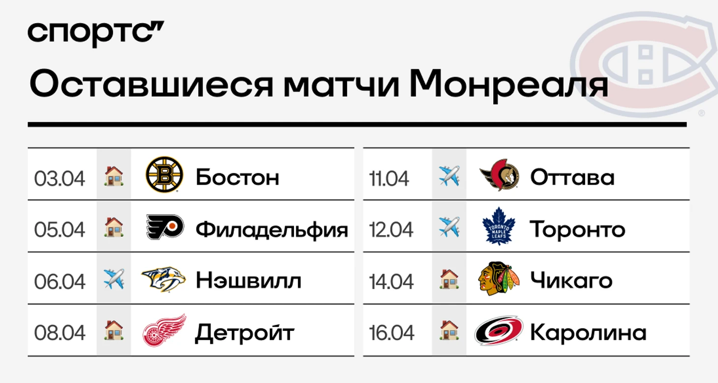 ● «Монреаль» проводит неровный сезон. Но к середине регулярки команда разбегалась, и теперь тоже хочет отложить себе отпуск как минимум на пару недель. «Канадиенс» даже не продавали в дедлайн (хотя было кого: Дворак, Эванс, Савар) – в клубе действительно поверили в возможность попадания в плей-офф. Но для этого нужно еще несколько подвигов – четырех побед над «Флоридой» в сезонной серии может не хватить.