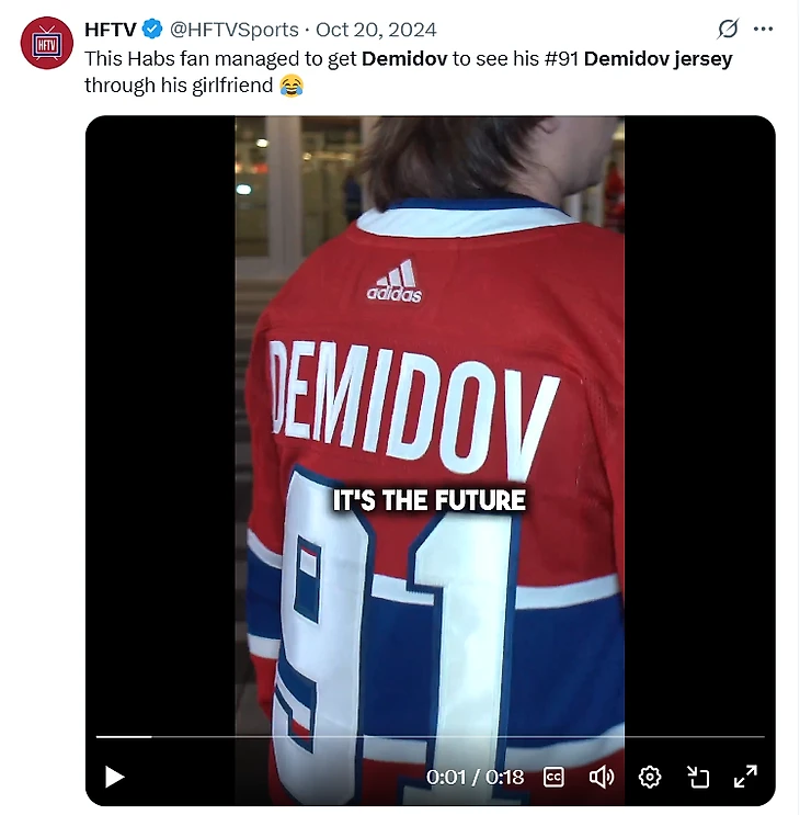 Фанаты уже придумали первую кричалку про Демидова. Ее опубликовал в соцсетях аккаунт HFTV («Habs Fans TV»):